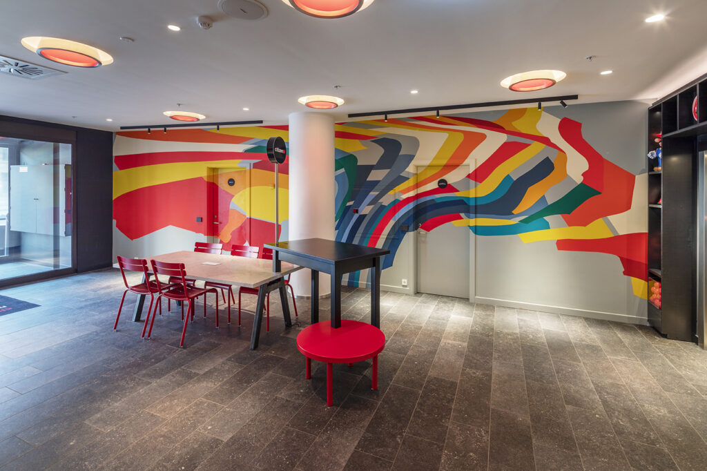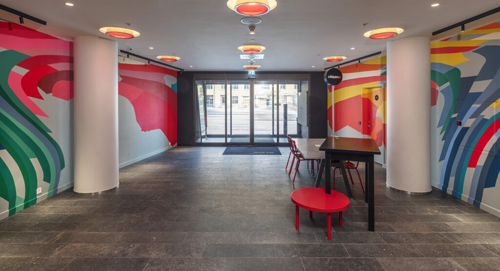 Hotel Citizen M havde brug for et stort vægmaleri der trak folk ind i lobbyen direkte fra gaden.